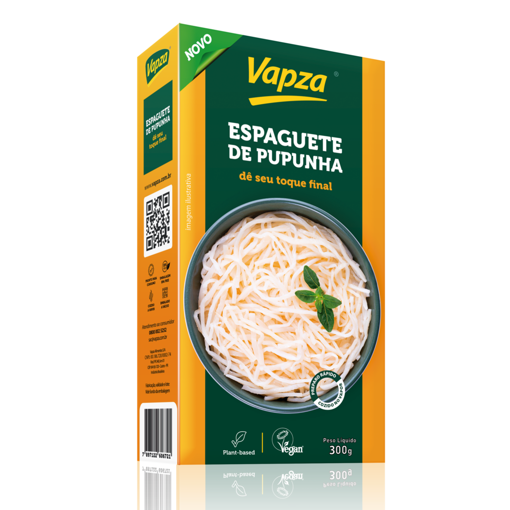 Pioneira no Brasil no segmento de alimentos embalados a vácuo e cozidos a vapor, a Vapza reforça seu portfólio com o lançamento do espaguete de pupunha. Tendo apenas o palmito-pupunha como ingrediente, o produto não contém qualquer conservante ou aditivo, é livre de glúten, vegano e plant-based. Além disso, já vem cozido e pode ser preparado em poucos minutos, permitindo maior praticidade ao consumidor. O produto já está disponível no varejo brasileiro, em embalagem de 300 gramas.